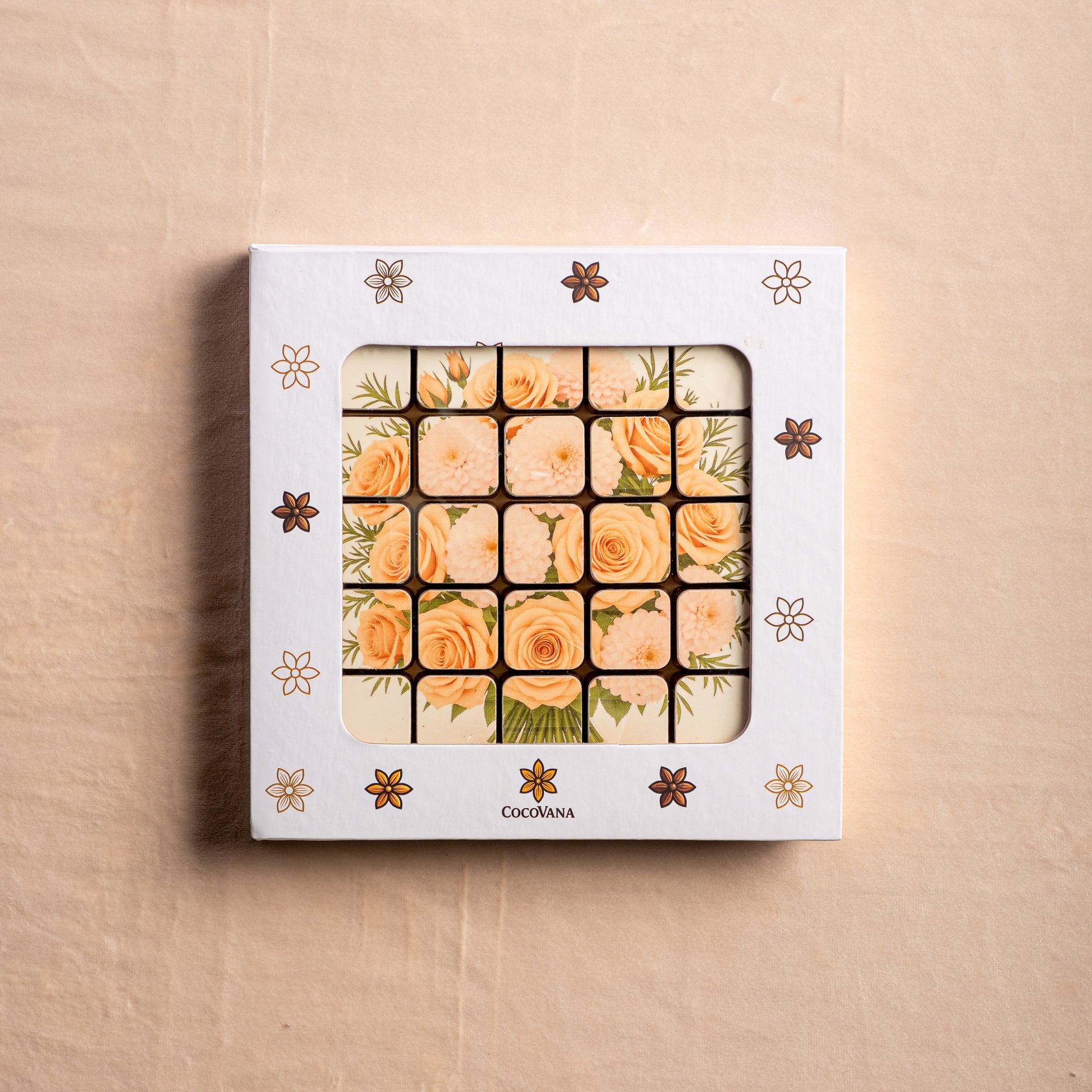 This stunning set features 25 handcrafted bonbons printed with one of our designs — each chocolate a piece of edible art. Paired with a a bouquet, it’s the perfect gift when words aren’t enough.